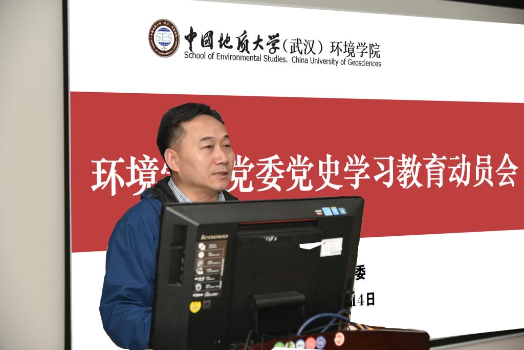 李素矿作党史学习教育动员讲话。他首先带领大家一起学习习近平总书记在党史学习教育动员大会上的重要讲话精神;传达了党中央、教育部党组、湖北省委、刮刮卡