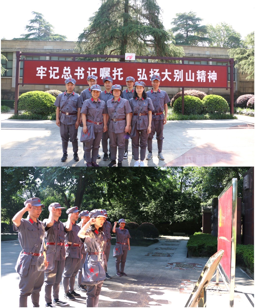 鄂豫皖苏区是中国共产党在土地革命战争时期领导创建的根据地之一,在这里无数革命先烈用鲜血和生命创造了“28年红旗不倒”的传奇,孕育了“坚守信念、胸怀全局、团结一心、勇当前锋”的大别山精神。在烈士陵园烈士浮雕墙前,全体党员身着红军服,瞻仰鄂豫皖苏区首府烈士陵园,参观烈士浮雕墙、烈士纪念堂、烈士纪念碑、烈士纪念亭和烈士墓地,党支部书记马丽媛带领党员同志重温入党誓词,为每一位党员打上大别山精神“烙印”,感悟革命先烈大义凛然、视死如归的高尚情操和革命气节,学习革命先烈不畏艰险、不畏强敌、勇于奋斗和牺牲的拼搏精神,感受红色政权的来之不易。