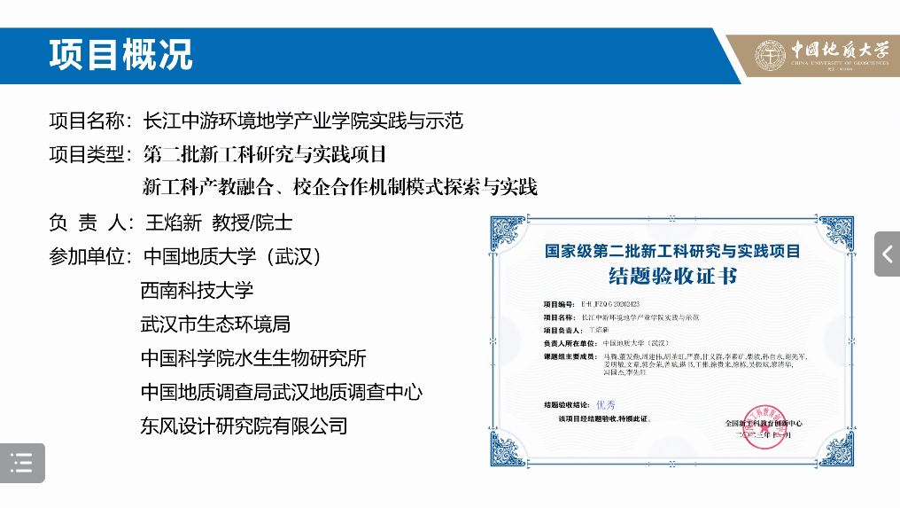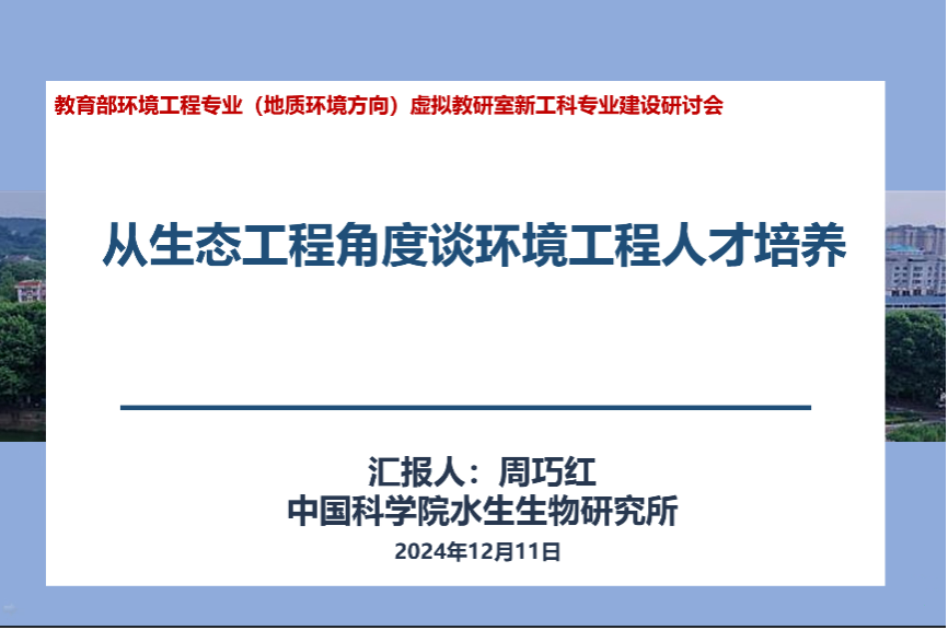 (通讯员崔艳萍、邢新丽、李俊霞、严璐 编辑耿婧)2024年12月11日上午,教育部环境工程专业(环境地质方向)虚拟教研室通过线上线下形式召开2024年度研讨会。虚拟教研室牵头人王焰新院士、虚拟教研室主要成员单位中科院水生所、长江产业集团湖北生态、刮刮卡