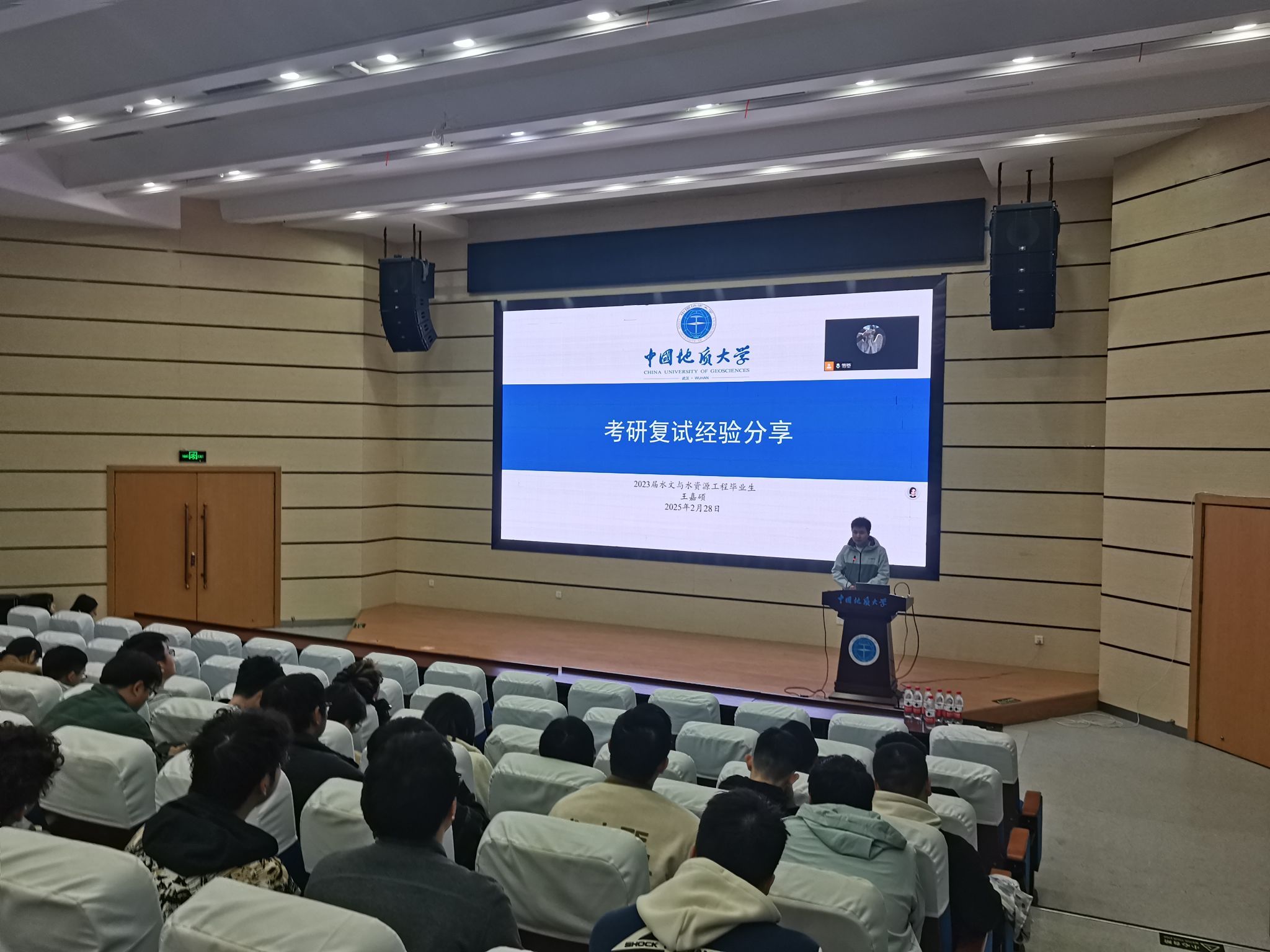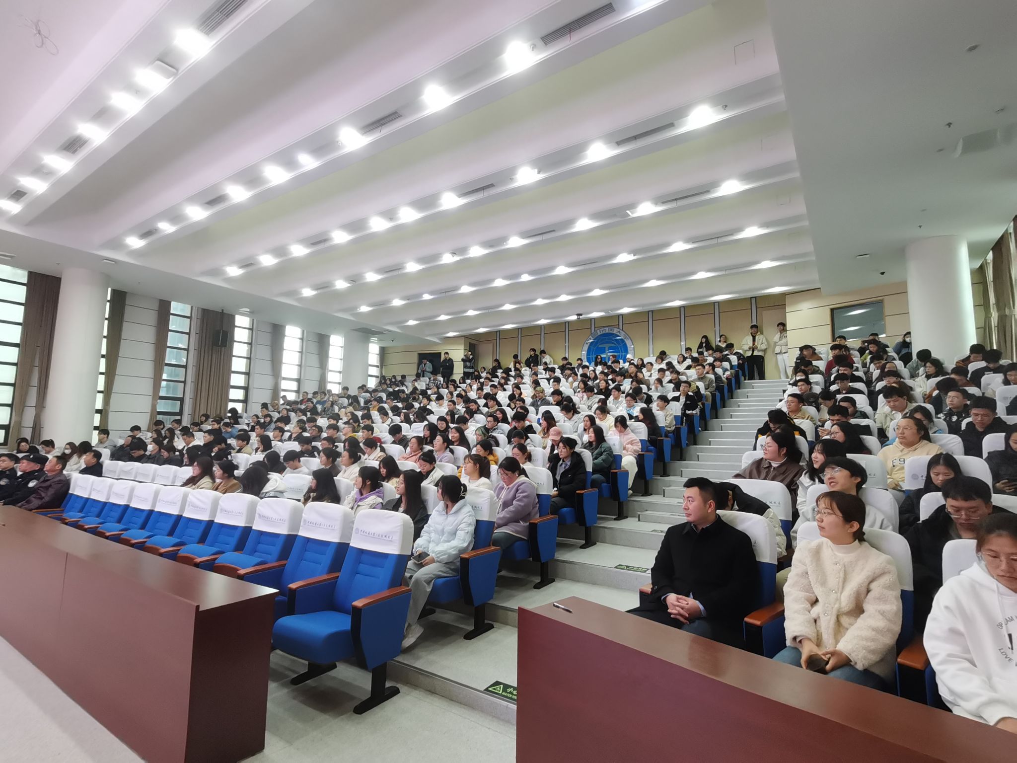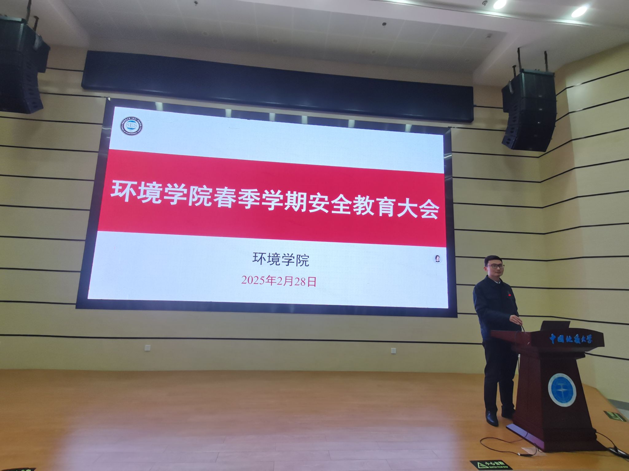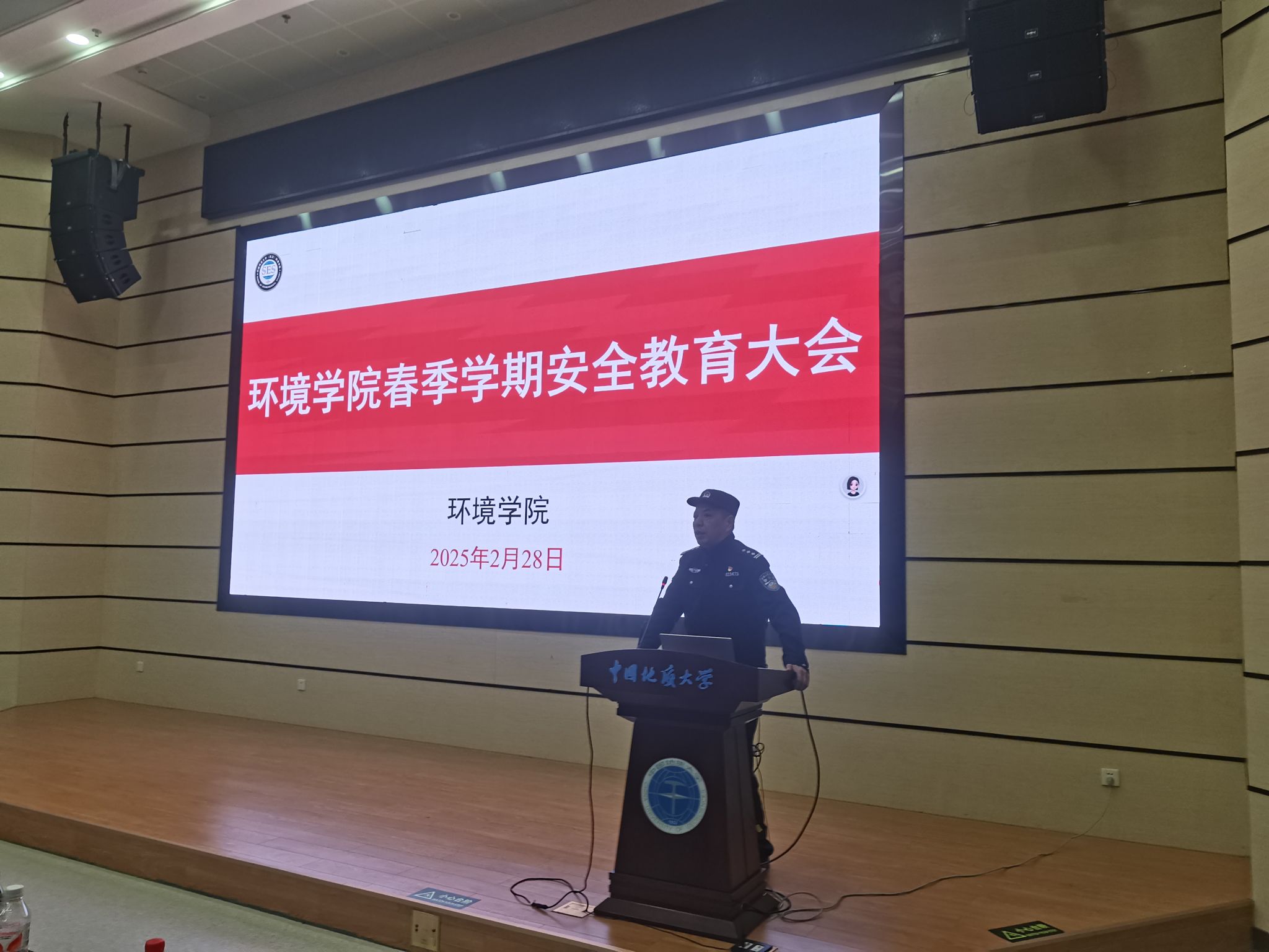 2025年春季学期本研学生安全教育专题会议和2025届本科毕业生年级大会在未来城校区公教一208报告厅举行。左岭派出所住校民警韩红卫,未来城校区保卫综合办公室张献文、邱鑫、张涛,环境刮刮卡