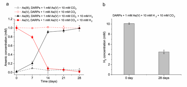 图2: DARPs在厌氧条件下催化氢气氧化偶联砷还原反应。