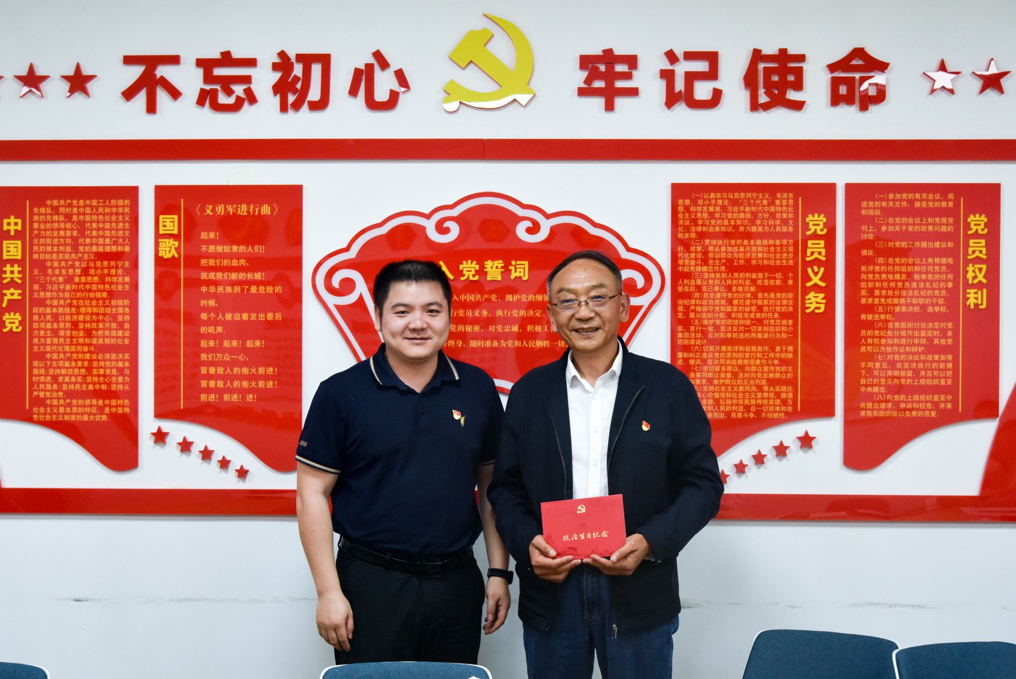 院直党支部有计划地组织诵读党章。孟庆达同志、肖小芳同志诵读党章的总纲部分内容。