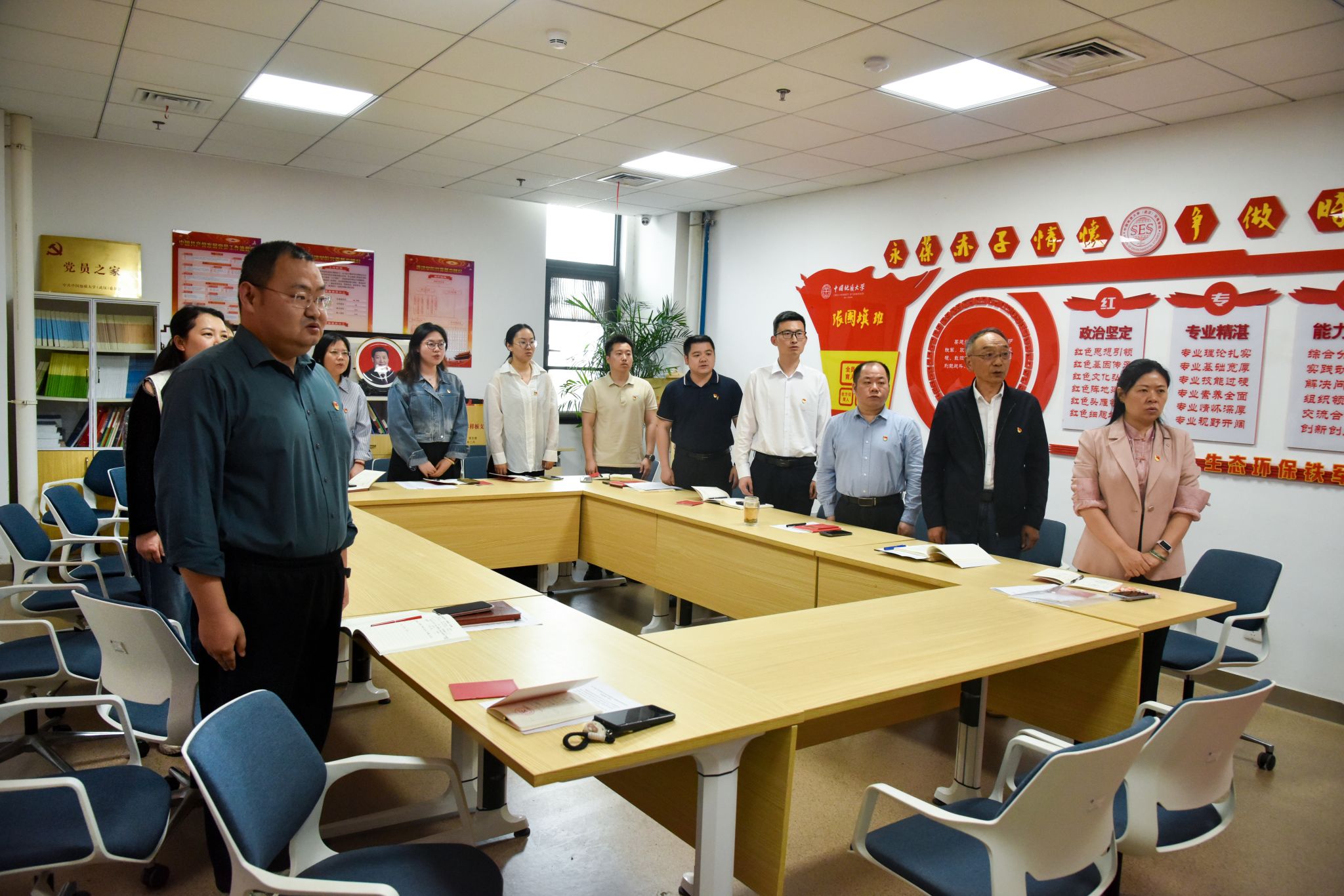 支部党员姜明敏、王海锋、张学海、杨涛、王孟雪、宋霖、刘欣然等积极交流发言,畅谈学习体会。大家一致认为,要认真学习习近平总书记关于加强党的作风建设的重要论述和中央八项规定及其实施细则精神,进一步提高政治站位、锤炼党性修养。要始终保持政治清醒和政治定力,切实增强国家安全意识,自觉树牢国家安全观念。要将个人成长发展融入“地大梦”“环境梦”的生动实践,为刮刮卡