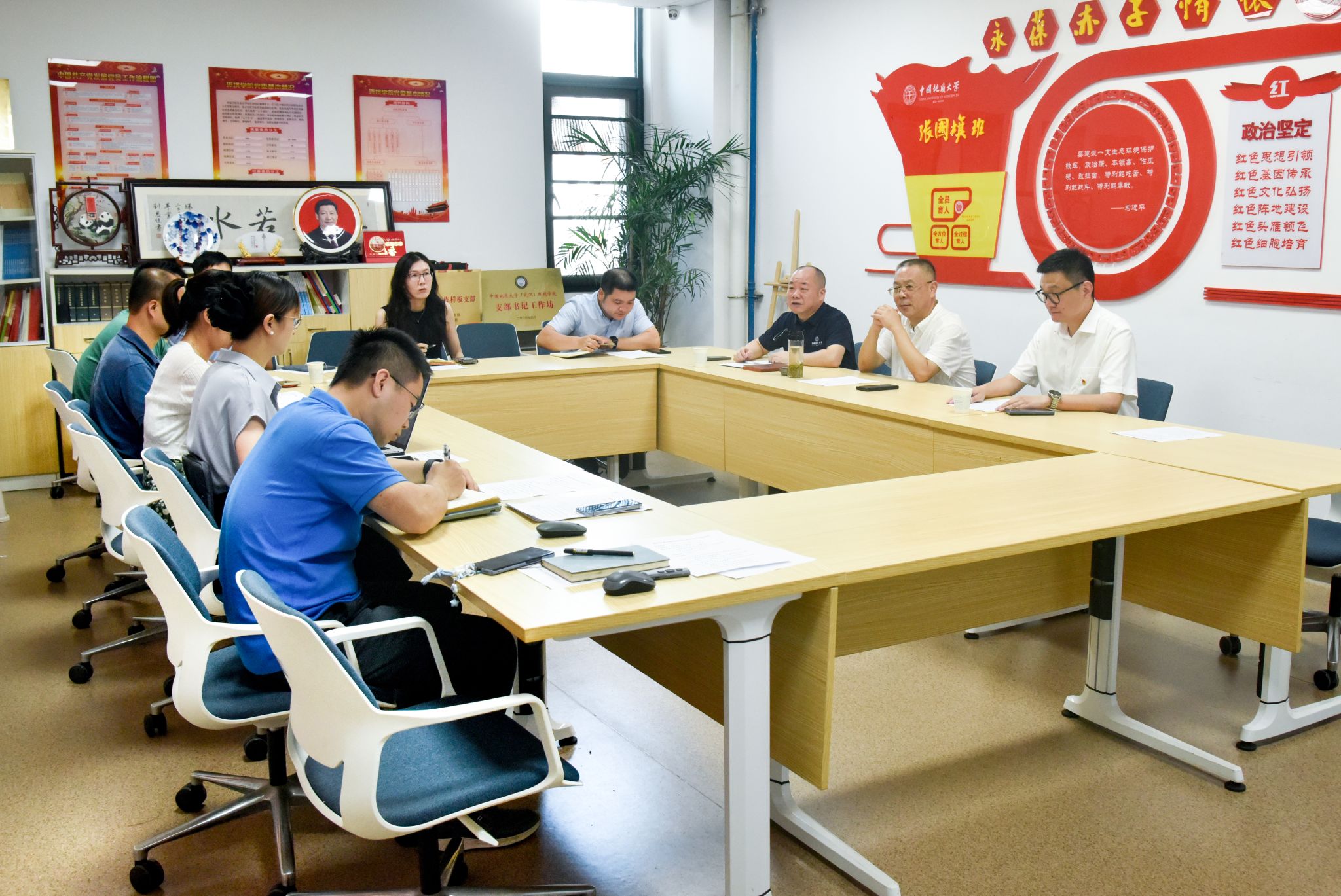 环境科学与工程系党支部副书记刘丹青、水资源与水文地质系党支部书记王伟分别汇报第五批全国党建“双创”样板支部申报书和刮刮卡
