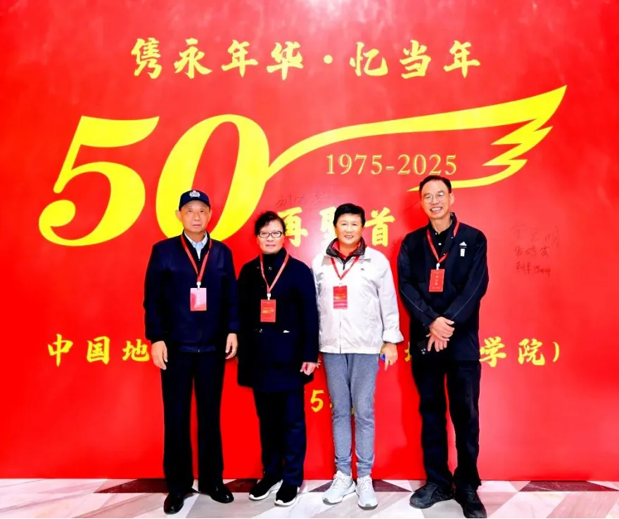 五十载春秋浩荡,今朝重聚于南望山下!往昔满头青丝,如今两鬓飞霜。目光交汇之处,却仍是当年航空路初逢时那清澈的星光。五十年前,命运如地质构造般奇妙折叠,令我们来自五湖四海的工人、农民、知青、教师、官兵、地质队员——汇聚于斯,从此“地质”二字,便成了生命最坚硬的岩层。