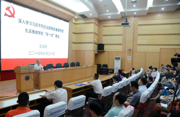 (通讯员:王碧 摄影:张学海)2017年6月20日晚,在迎宾楼报告厅,王焰新校长以《深入学习习近平同志治国理政重要思想,扎实推进刮刮卡