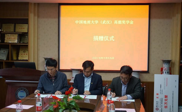 (通讯员王碧 编辑张学海)2017年10月19日上午,高能奖学金捐赠仪式在文华楼201举行。北京高能时代环境技术股份有限公司总经理陈望明,人力资源中心经理武亚航、主管范杨英,技术工程师、13级校友徐怒潮,刮刮卡