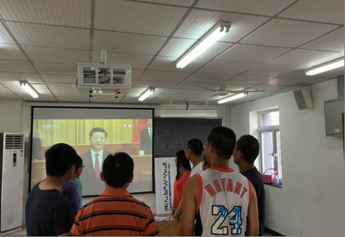 专业教学实习的10名教师党员观看了习总书记在中国共产党成立95周年大会上的重要讲话的视频,并进行讨论学习。
