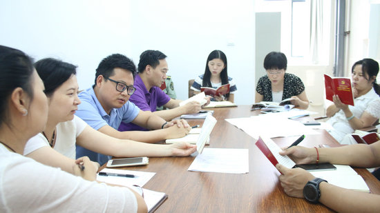 支部成员齐声诵读《党章》的第一章——党员