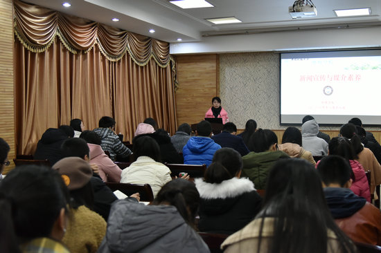 刘妍慧就新闻写作进行讲解。她说,写好新闻稿需要记者对采访对象进行深入采访与细节挖掘,尤其是典型师生人物稿件,要着重挖掘其中的感人之处。在把握新闻要素齐全基础上,要重点从日常事件中寻找其新闻价值。她强调,想写好新闻,需要多琢磨,反复思考,不断修改与提炼,使文章具有价值性、说服力及感染力。