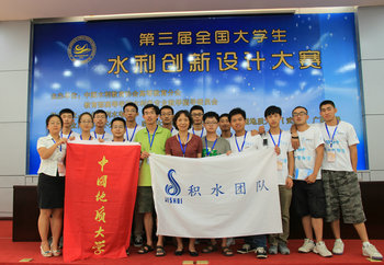 生课外科研团队——积水团队选送的4支 参赛队伍表现突出:张亚男、刘越、夏新星、李琦完成的作品《基于地质材料的自来水处理系统》(指导教师:马腾、马传明),和泽康、范奇、王斌、李秀文完成 的作品《基于雨污二次分流的小区式雨水利用系统设计》(指导教师:马传明、潘欢迎)获特等奖;王宗星、闫海虎、冯丹、张长城完成的作品《降雨及入渗自动化 监测仪》(指导教师:潘欢迎、马腾)获一等奖;李仲夏、高延康、金子祺、袁超完成的作品《地下水库回灌方法设计》(指导教师:万军伟、李春雨)获二等奖; 另一支参赛队伍:贾梦琦、韩兆丰、谢如意、边潇完成的作品《基于ORC-GAC-Fe(O)装置在地下水Cr污染修复技术中的应用》(指导教师:成建梅、谢先军)获二等奖。