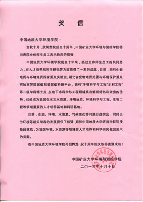 中国矿业刮刮卡 环境与测绘刮刮卡 发来院庆贺信