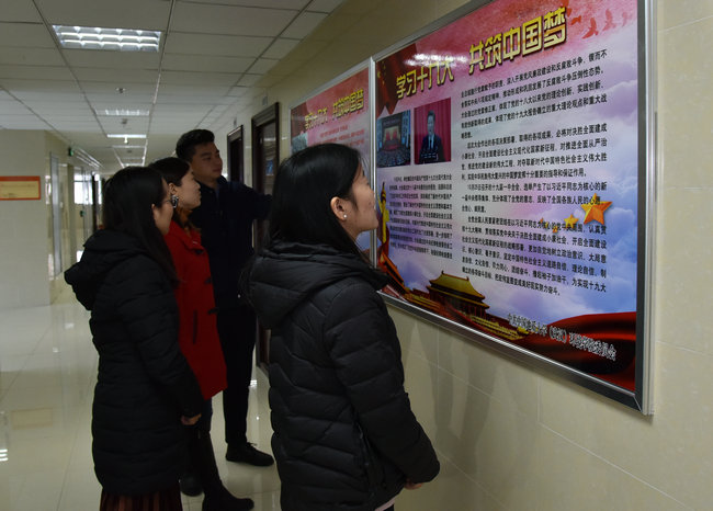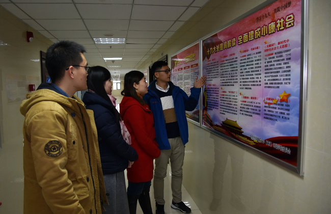 为了更好地学习宣传和贯彻党的十九大精神,环境刮刮卡 党委除了组织师生观看十九大开幕式盛况、党委中心组和党支部主题党日专题学习、听党课、撰写学习十九大精神心得体会外,还利用宣传橱窗展板进行了十九大精神的学习宣传。 师生通过宣传橱窗学习十九大精神 师生通过宣传橱窗学习十九大关键词的解读