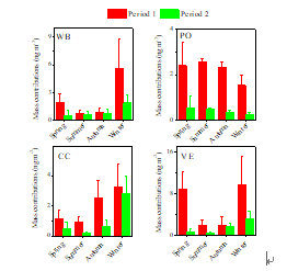 图4 两个阶段源贡献的四季变化(WB-生物质燃烧;PO-油品挥发和燃烧;CC-燃煤;VE-机动车尾气)