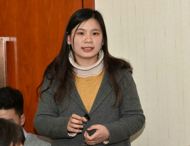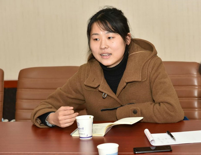 2017届同心社社长李海燕汇报同心社基本情况,并代表2017届同心社成员向朱裕伦先生递交了感谢信。