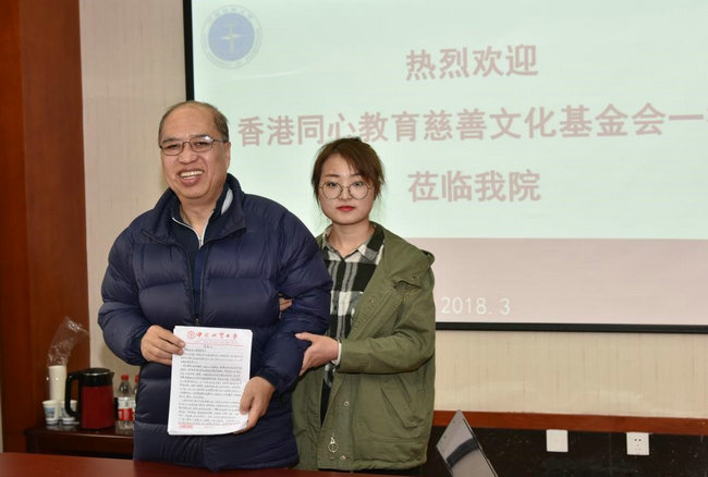 党委书记李素矿、陈植华教授、副院长甘义群、副书记朱继、院直办公室老师及历届同心社学生代表参加见面会,共同欢迎同心教育慈善文化基金会朱裕伦先生一行的到来。