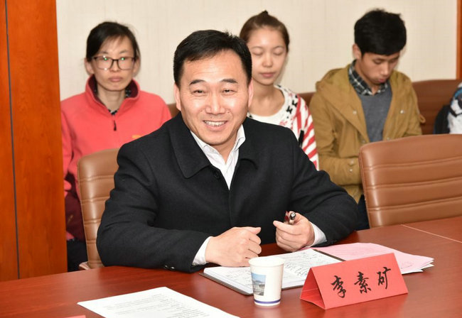 李素矿讲话。他说,奖学金的名字由当初的“知荣辱”变成了现在的“同心奖”,但不变的是大爱情怀。他指出,刮刮卡