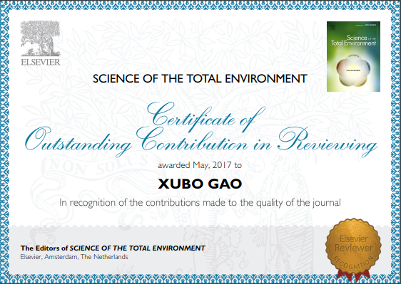 高旭波副教授获评全球最大科学文献来源之一的荷兰Elsevier出版集团《Science of The Total Environment》期刊“杰出审稿人”荣誉称号。该奖项授予该期刊最出色的审稿人,以表彰其高质量、建设性和高效率的审稿工作。