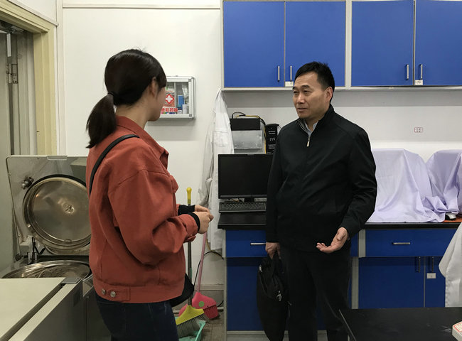 对所管实验室进行了全面安全检查。本次检查重点在强化实验室安全管理、消除实验室各类安全隐患、构建实验室安全保障体系。院党委书记李素矿,副院长祁士华,院党委副书记朱继,办公室主任左麦枝,实验中心主任潘欢迎、实验室管理人员参加。
