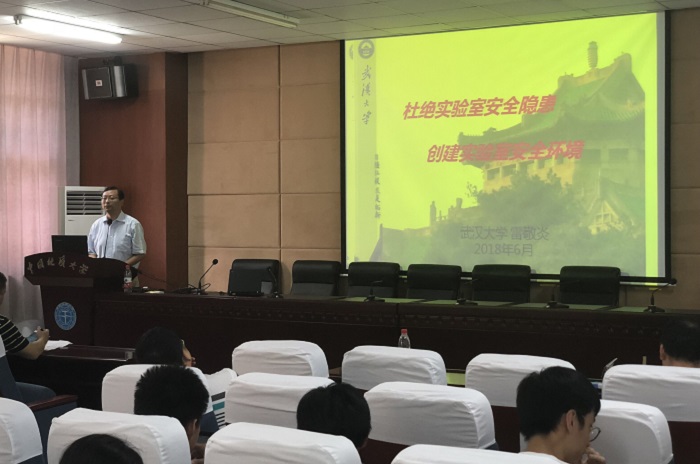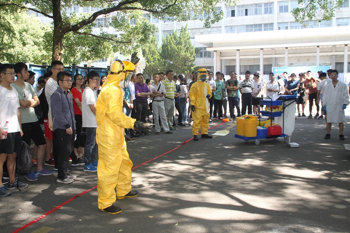 实验室安全工作现状做了简要介绍。他希望通过演练切实提高师生实验室安全意识,增强实验人员应急处理能力,要求各单位要高度重视实验室安全,落实好安全防护措施。