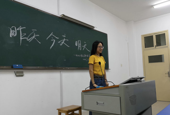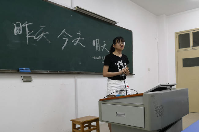 主持人社前任社长刘敬章同学的发言令人深省。作为从外国语专业转过来的他要比别人付出更多努力才行。从大二开始,他因为要补修许多课程,再加上学生工作,很少有时间休息。但他一直保持着积极乐观的心态,并与班级其他同学相处融洽,互相帮助。他的精神值得我们学习。