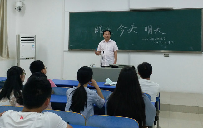 贾金诺对此次班会主要内容进行简要介绍。通过班会与领导老师们面对面一对一的交流,让同学们学到许多课本上学不到的东西,也是一次思想上的启迪。贾金诺同学说:“自大一以来一直担任班级班长,感谢同学能够理解和支持自己,面对即将迎来的大四生活,希望同学们能够取得更大的进步。”