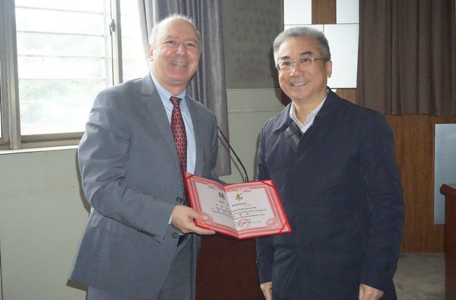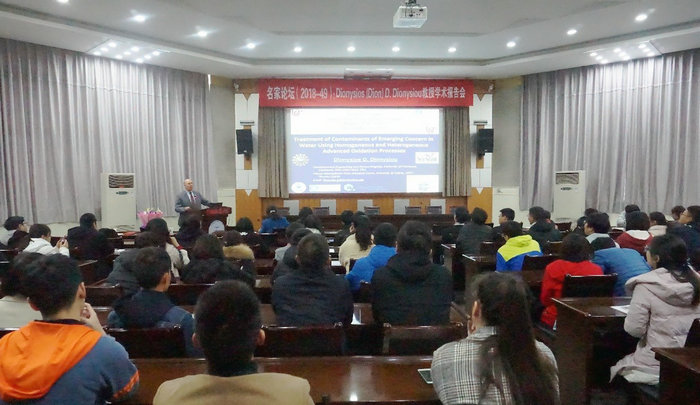 (University of Cincinnati)环境科学与工程系Dion教授做客名家论坛,并以“Treatment of Contaminants of Emerging Concern in Water Using Homogeneous and Heterogeneous Advanced Oxidation Processes”为题作学术报告。校长王焰新,环境刮刮卡