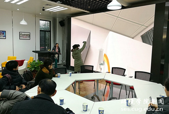 国家级示范中心——生物学实验教学中心,调研了植物学、微生物学、细胞与遗传学、生化与分子生物学、生物信息学、生物工程、学生创新实验室建设,现场体验了虚拟仿真实验室的VR虚拟仿真实验。