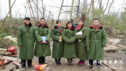 2014年12月邓老师与研究生们在江汉平原钻探现场守钻