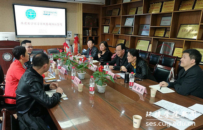 在文华楼201会议室续签了共建教学实习实践基地协议。出席签约活动的有环境刮刮卡