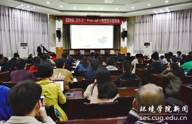 Peter Jaffe教授系统介绍了一种新型的氮衰减过程-铁氨氧化(Feammox)的重要性、微生物学发生机制、影响因素,以及该过程对其他重金属转化和有机物降解的影响。铁氨氧化新型生物过程在污水处理和湿地生态修复中将有较好的应用前景。他的报告引发了在场师生的强烈兴趣,现场互动热烈,Peter Jaffe教授耐心解答了师生提问。