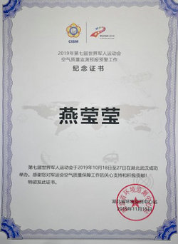 —大气环境团队师生收到军运会空气保障感谢信和纪念证书