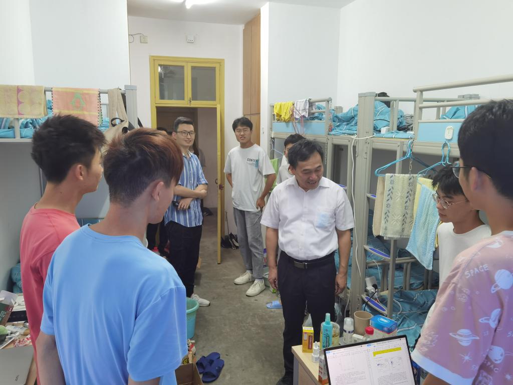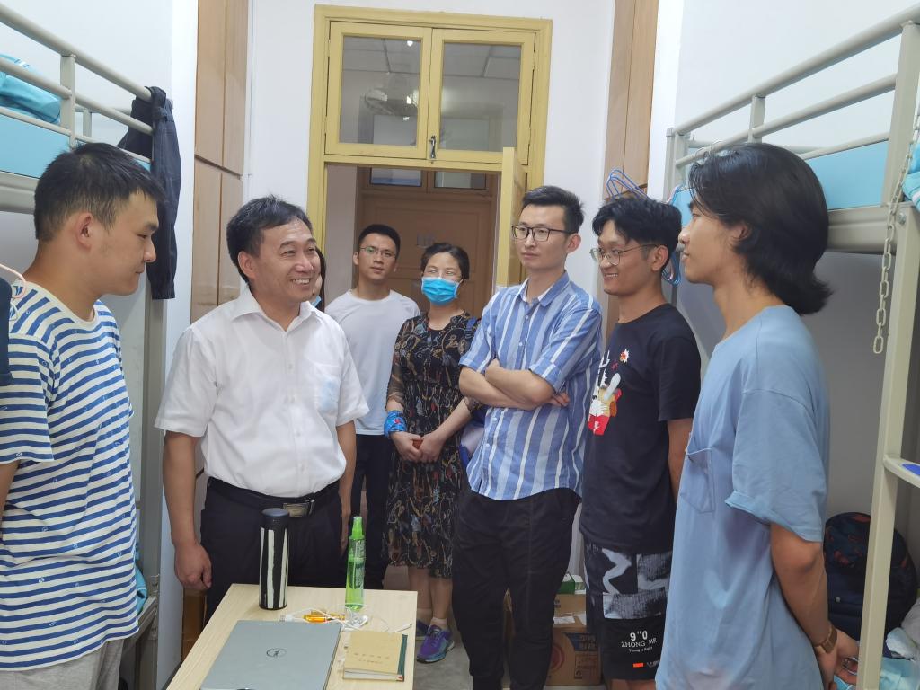 29日下午,李素矿一行来到学生宿舍,与学生亲切交流,详细了解学生实习情况、关怀学生身体健康。询问河南籍学生家中受灾情况,有何困难,要求要将刮刮卡
