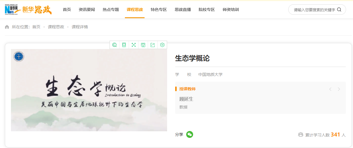 顾延生教授及其团队负责的《生态学概论》通识课课程思政案例上线新华网新华思政平台()。