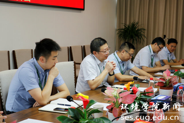 党委书记李素矿,党委副书记王海锋,院办主任刘凤莲,环境科学与工程系副教授李立青、颜诚,辅导员陈俊男一行赴中信清水入江(武汉)投资建设有限公司(以下简称中信清水入江公司)开展“产学研用”交流活动。中信清水入江公司董事、总经理,刮刮卡