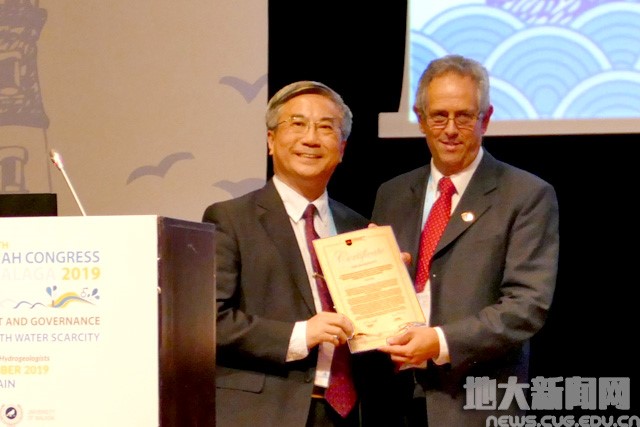 国际水文地质学家协会主席Antonio Chambel教授为王焰新颁奖