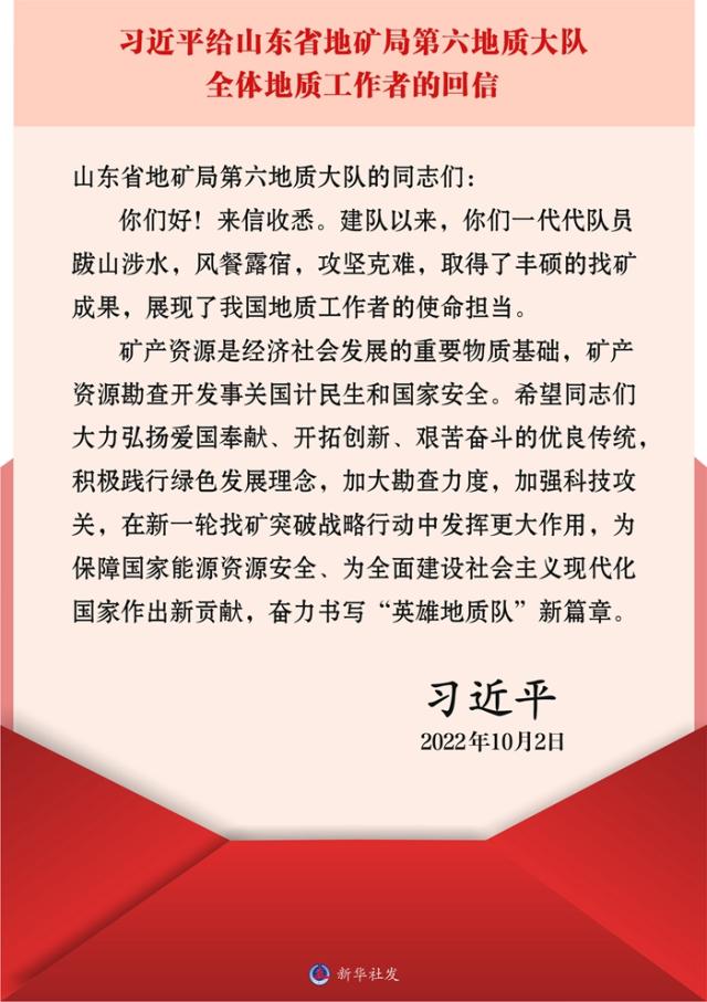 (通讯员/编辑严丽莎 摄影耿婧)10月2日,习近平总书记给山东省地矿局第六地质大队全体地质工作者回信,对他们弘扬优良传统、做好矿产勘查工作提出殷切期望。环境刮刮卡