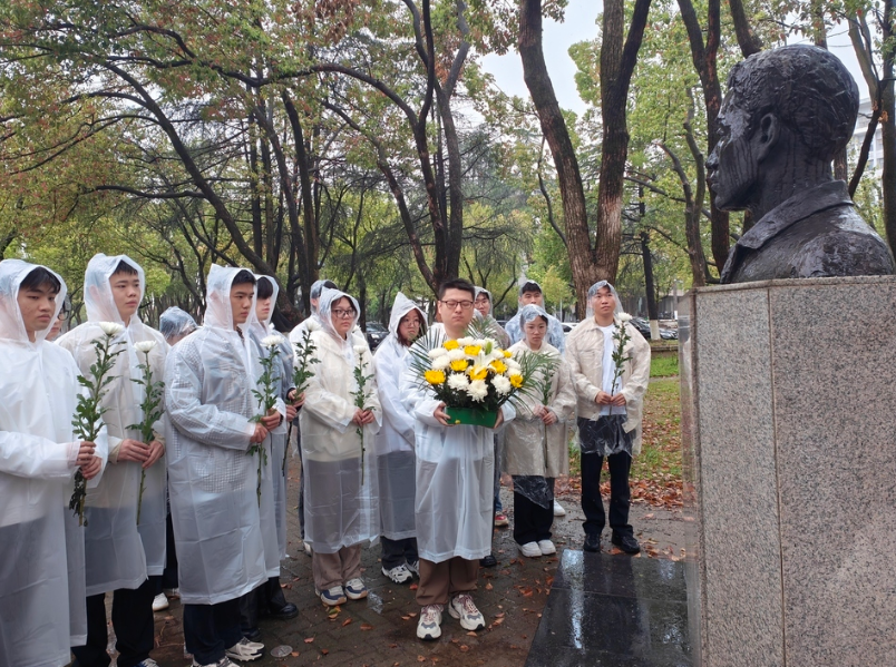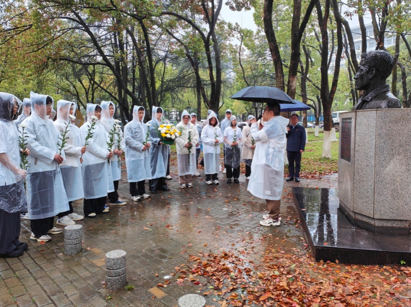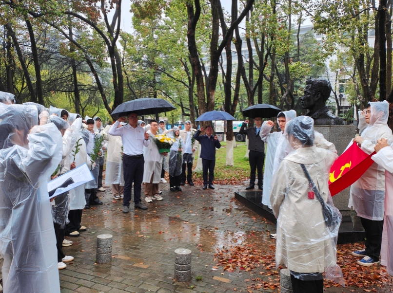 组织师生在水文地质专业优秀校友张国旗的雕像前开展清明祭扫活动,刮刮卡