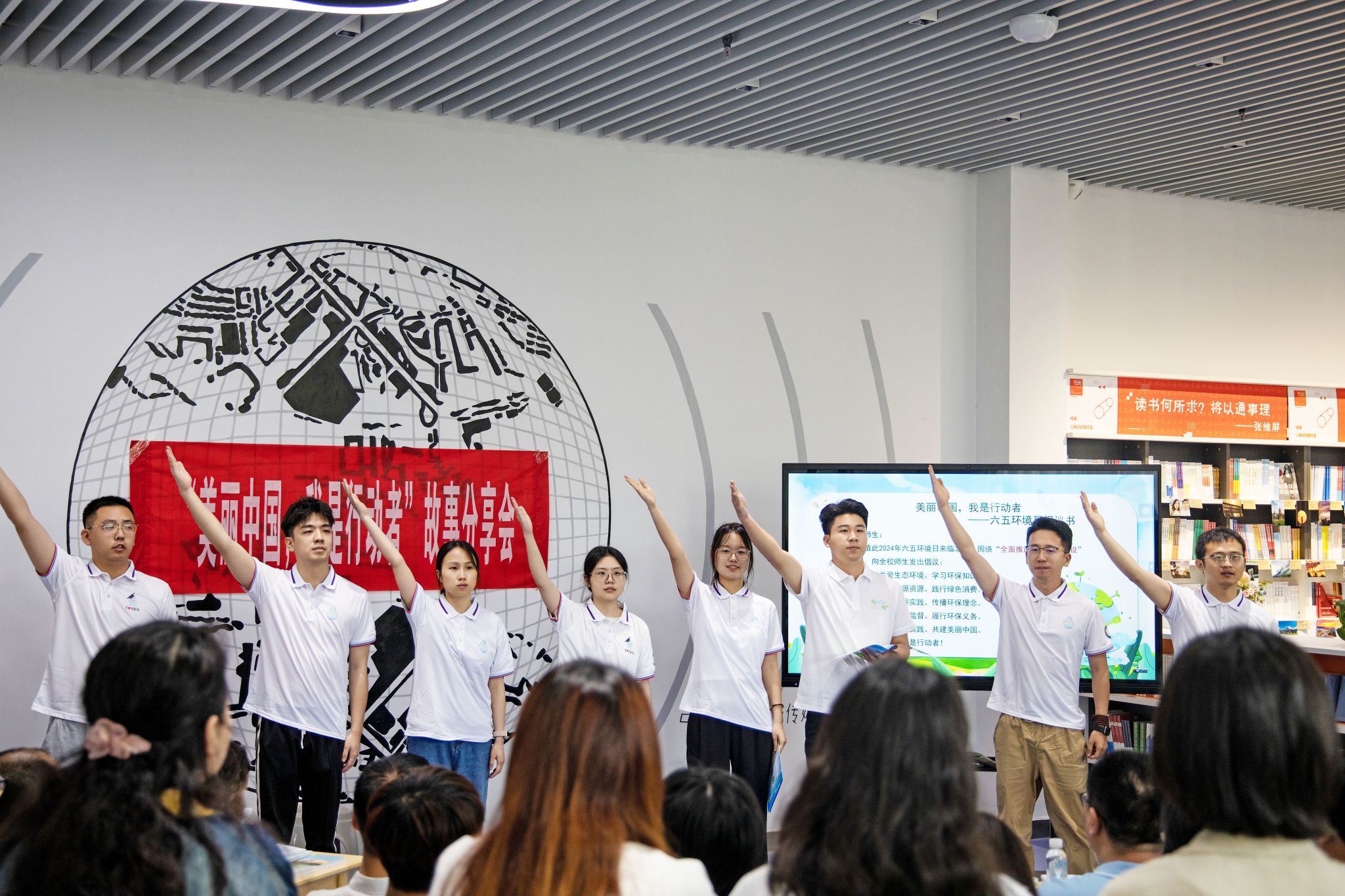 学生代表向全校师生发出世界环境日倡议,号召大家一起行动、共同努力,关爱生态环境、学习环保知识;节约能源资源、践行绿色消费;参加环保实践、传播环保理念;开展环境监督、履行环保义务;投身伟大实践、共建美丽中国。