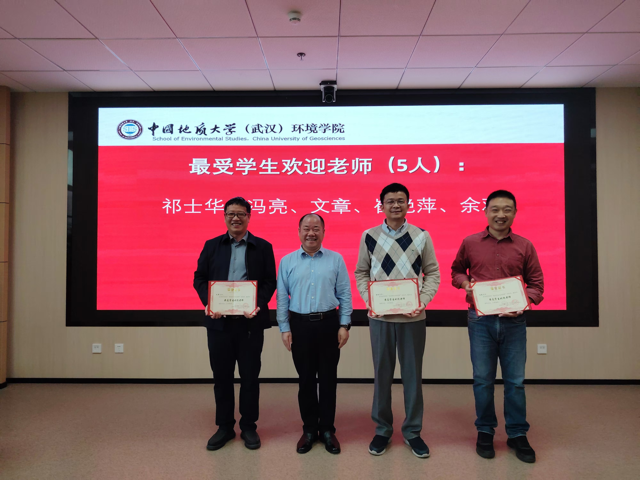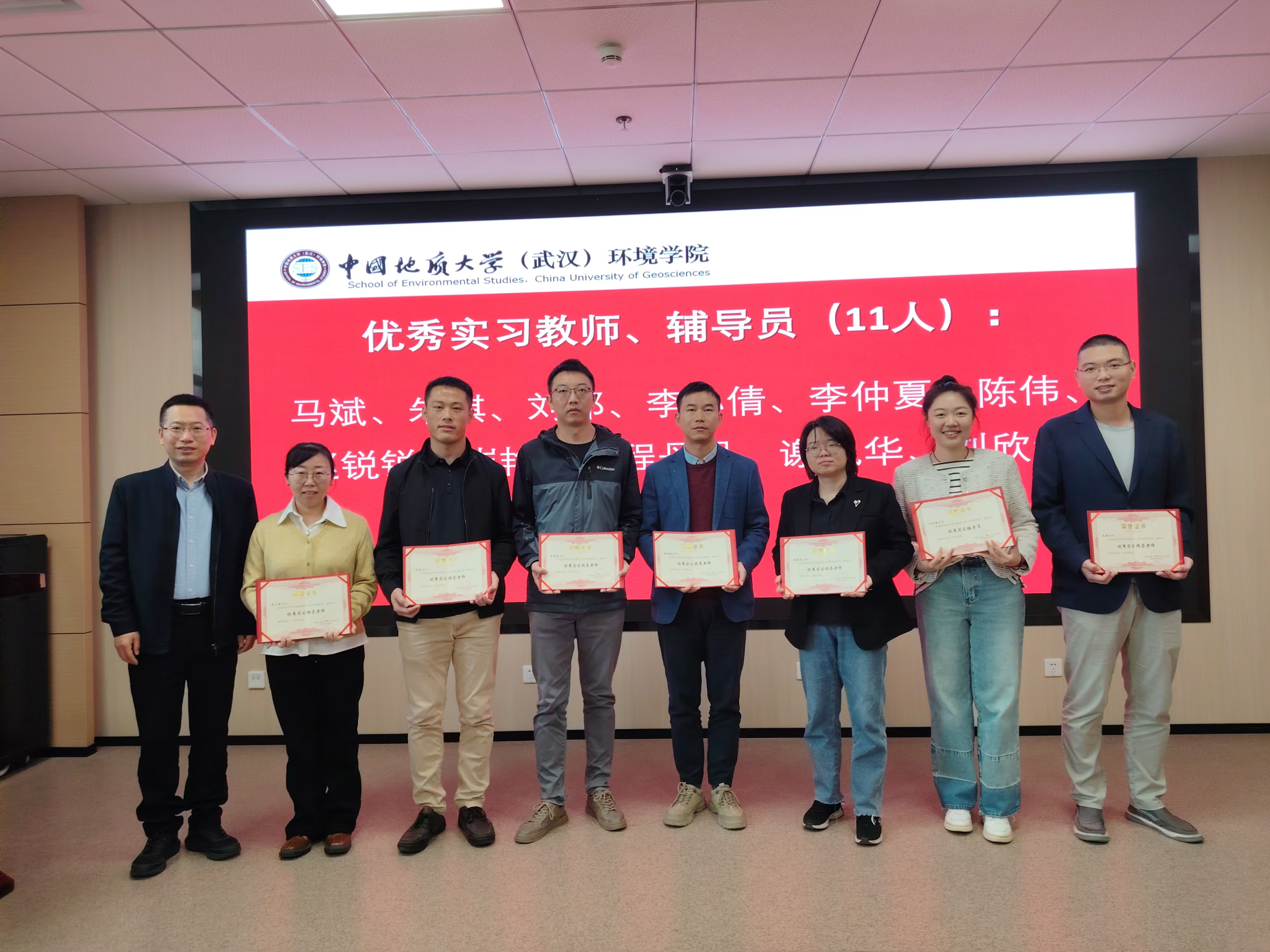 柴波主持会议,并宣读《关于表彰2024年环境刮刮卡 优秀实习指导老师、辅导员的决定》和《关于表彰2024年”最受学生欢迎老师“的决定》,院领导为优秀实习指导教师、辅导员、最受学生欢迎老师颁奖。