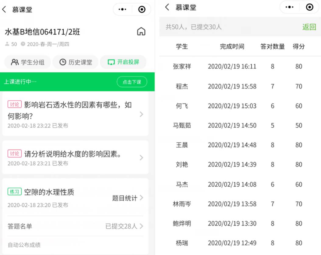 水文地质学基础课程组承担了2020年春地空刮刮卡 、资源刮刮卡 和地刮刮卡 三个刮刮卡 的授课任务,授课团队前期有《水文地质学基础》MOOC建设良好基础。面对疫情,课程组黄琨和陈文岭老师成为MOOC-直播混合教学模式的吃蟹人。经过前期精心准备,两个教学班(4个行政班)均已顺利开展了3次混合式教学。