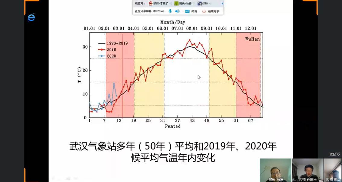 课后,众师生相互勉励,指出了线上教学的网络问题,也肯定了气候学团队的教学质量,同时不忘嘱托疫情期间的安全防护,为疫情期间的武汉带来一份温暖。