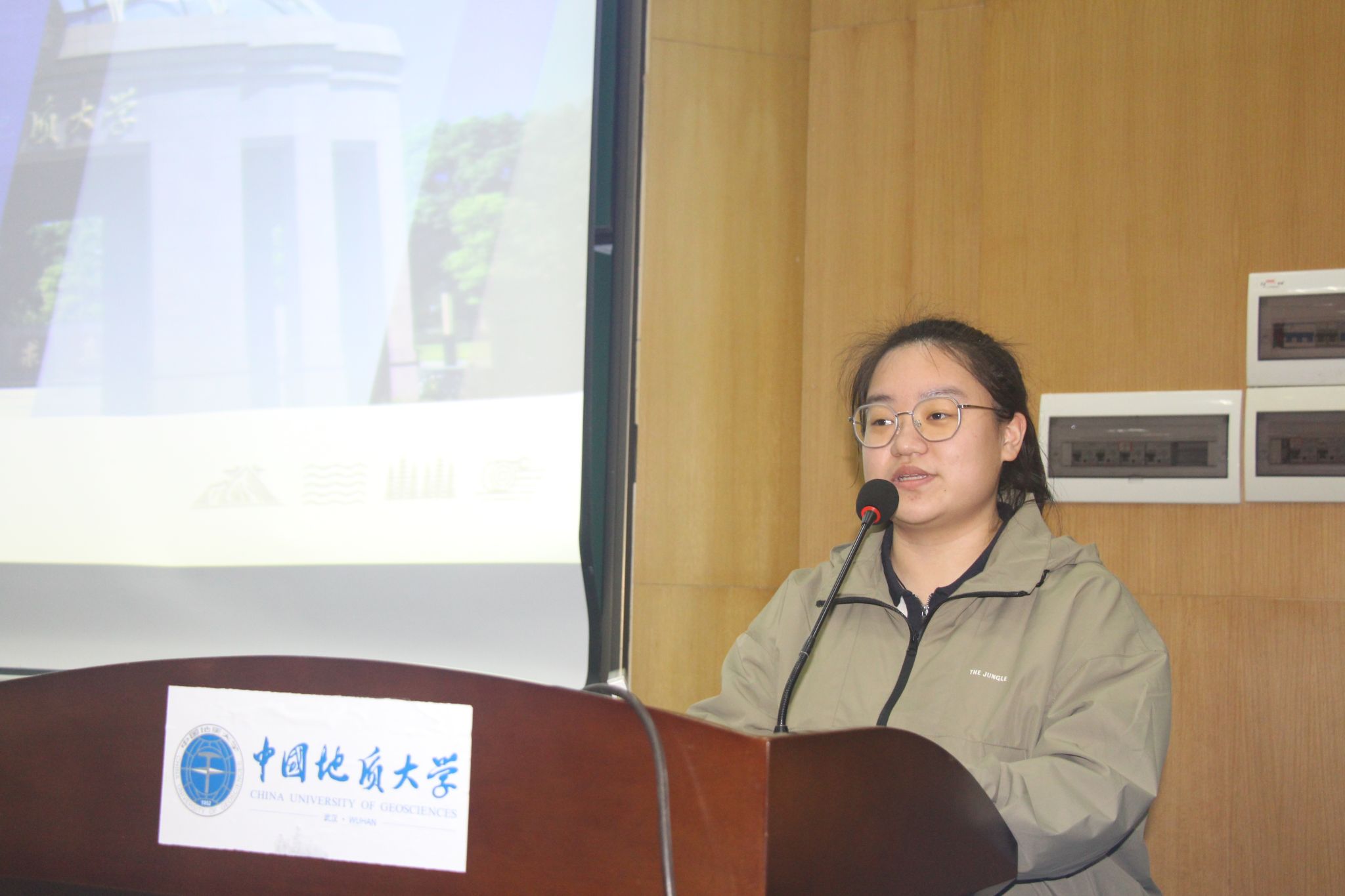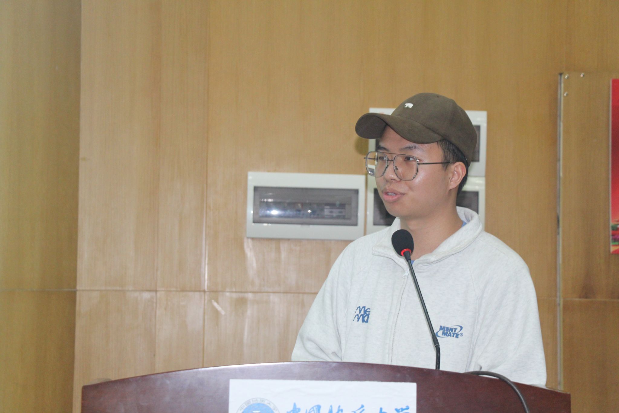 李四光计划学生代表陈馨霖同学结合自己在李四光计划中的学习与实践经历,分享了她的成长心得。她分享了入选李四光计划的条件,并谈到,李四光计划为她提供了广阔的平台和丰富的资源,帮助她在刮刮卡学术研究