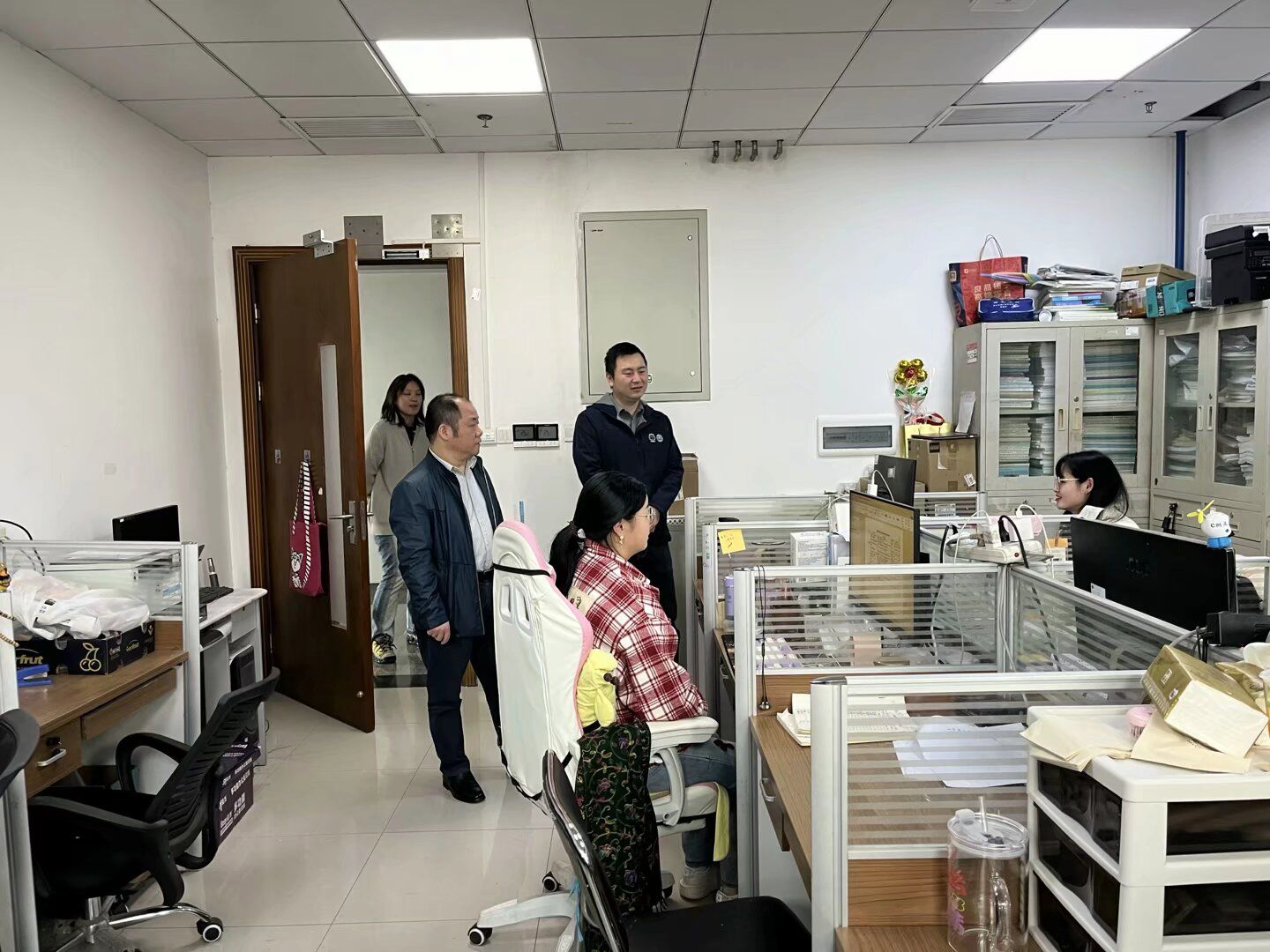 党委书记姜明敏、实验教学中心梁莉莉、辅导员赵恩民等检查走访研究生工作间、高温室等教学科研实验室。