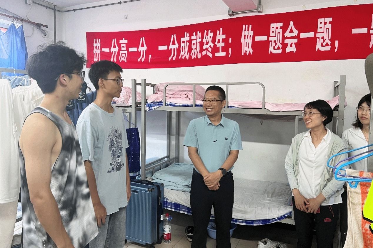 随后,史院长前往教师宿舍看望慰问带队教师。他认真听取了实习队关于本次实习的整体安排和阶段进展的汇报,对老师们高度的责任心和辛勤付出表示充分肯定与诚挚感谢。史院长还就进一步优化暑期实习环节、提升本科生野外实践教学质量等,与老师们进行了深入交流。