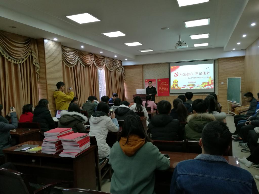 党委副书记朱继以“不忘初心、牢记使命-深入学习宣传贯彻党的十九大精神”为主题为全院学生党支部书记讲党课。