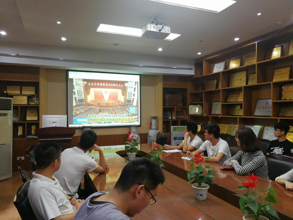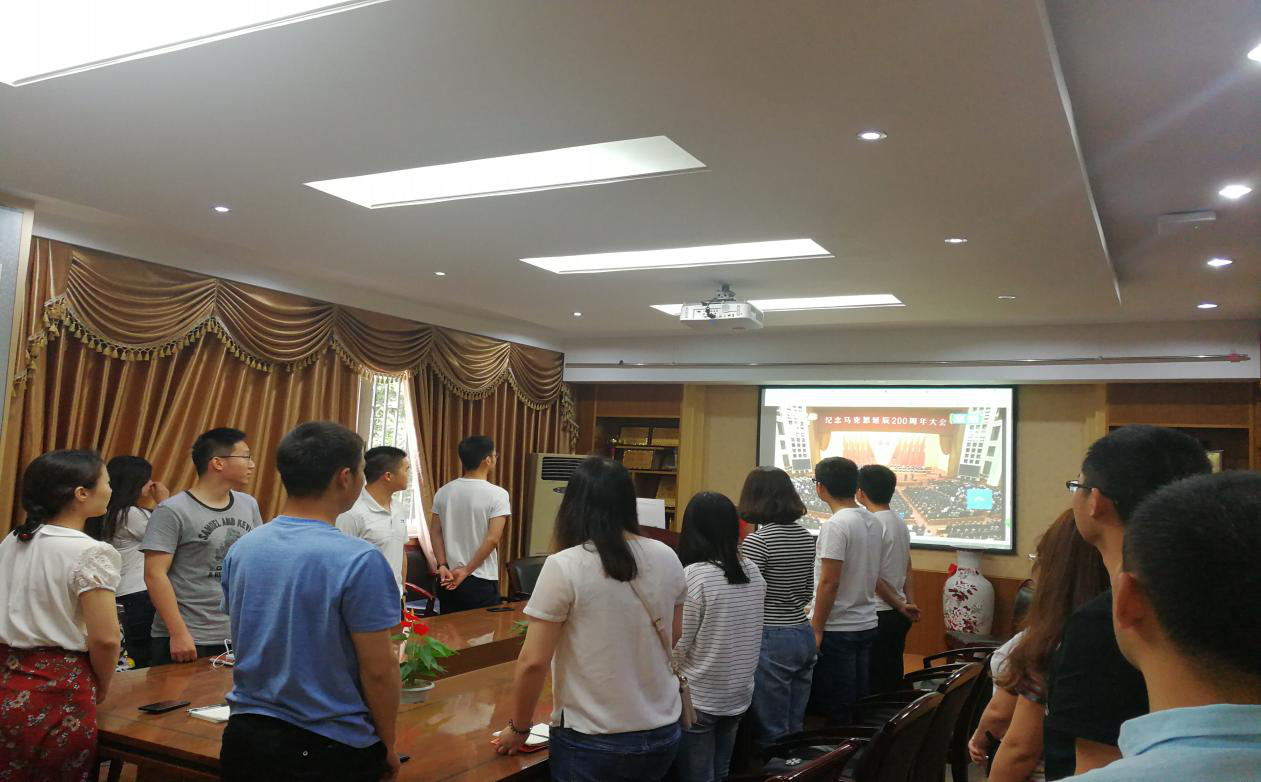 研究生在文华楼201会议室集体观看“纪念马克思诞辰200周年大会”直播。认真学习习近平总书记在大会上的重要讲话,缅怀马克思的伟大人格和历史功绩,重温马克思的崇高精神和光辉思想。