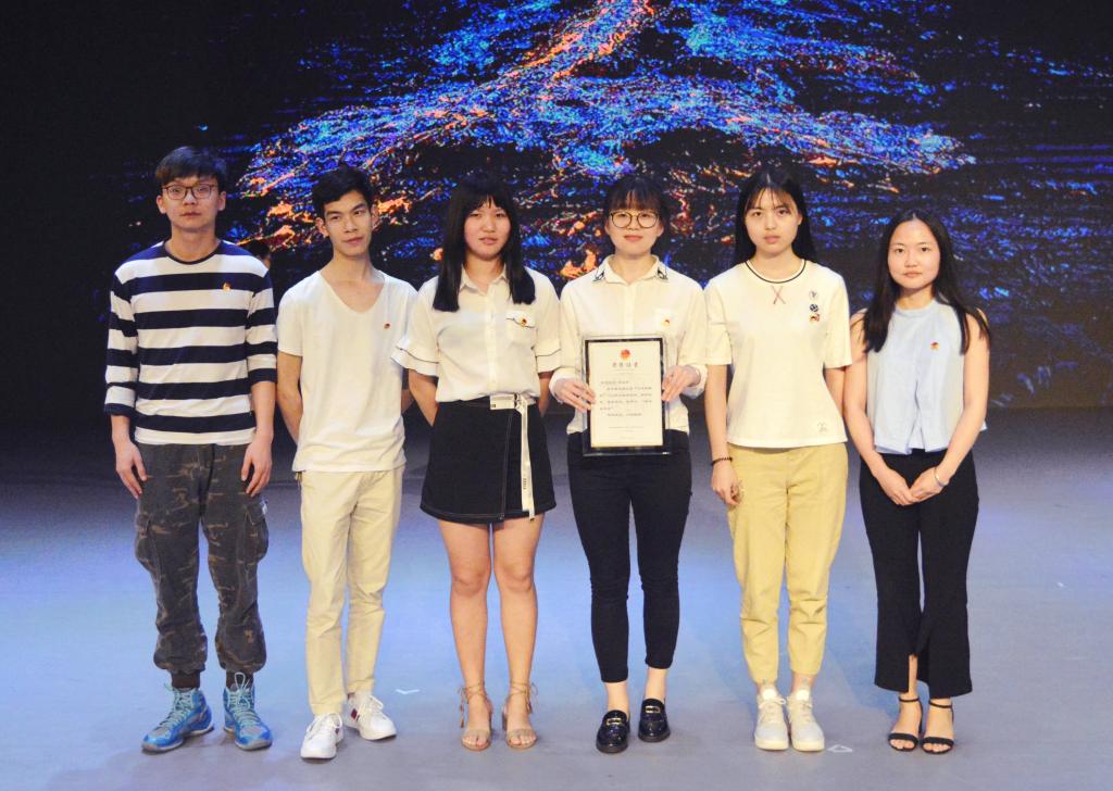 学生会获评年度校“标兵学生会”,学生会主席郭文杰上台领奖。