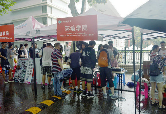 地图等物品,同时在迎新点设有“小水滴”玩偶、团委学生会展板、毕业生去向风展板等,引得学生家长和各界人士不时驻足观看。