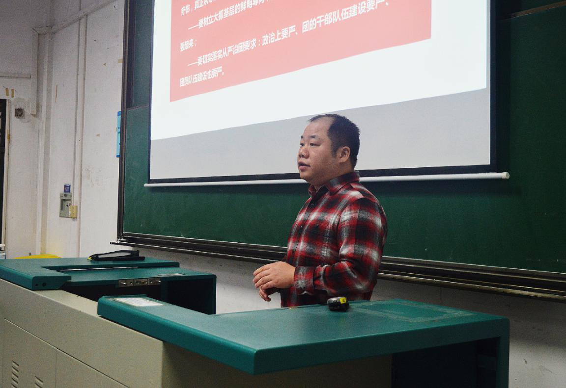 姜明敏老师传达了团的十八大精神,围绕政治建团,思想立团,固本兴团,改革强团,从严治团五个方面指出应该怎样建设共青团、建设什么样的共青团。在开展团组织活动方面,他认为,团会应具有教育意义,无论以何种形式开展,都应注重思想引领。